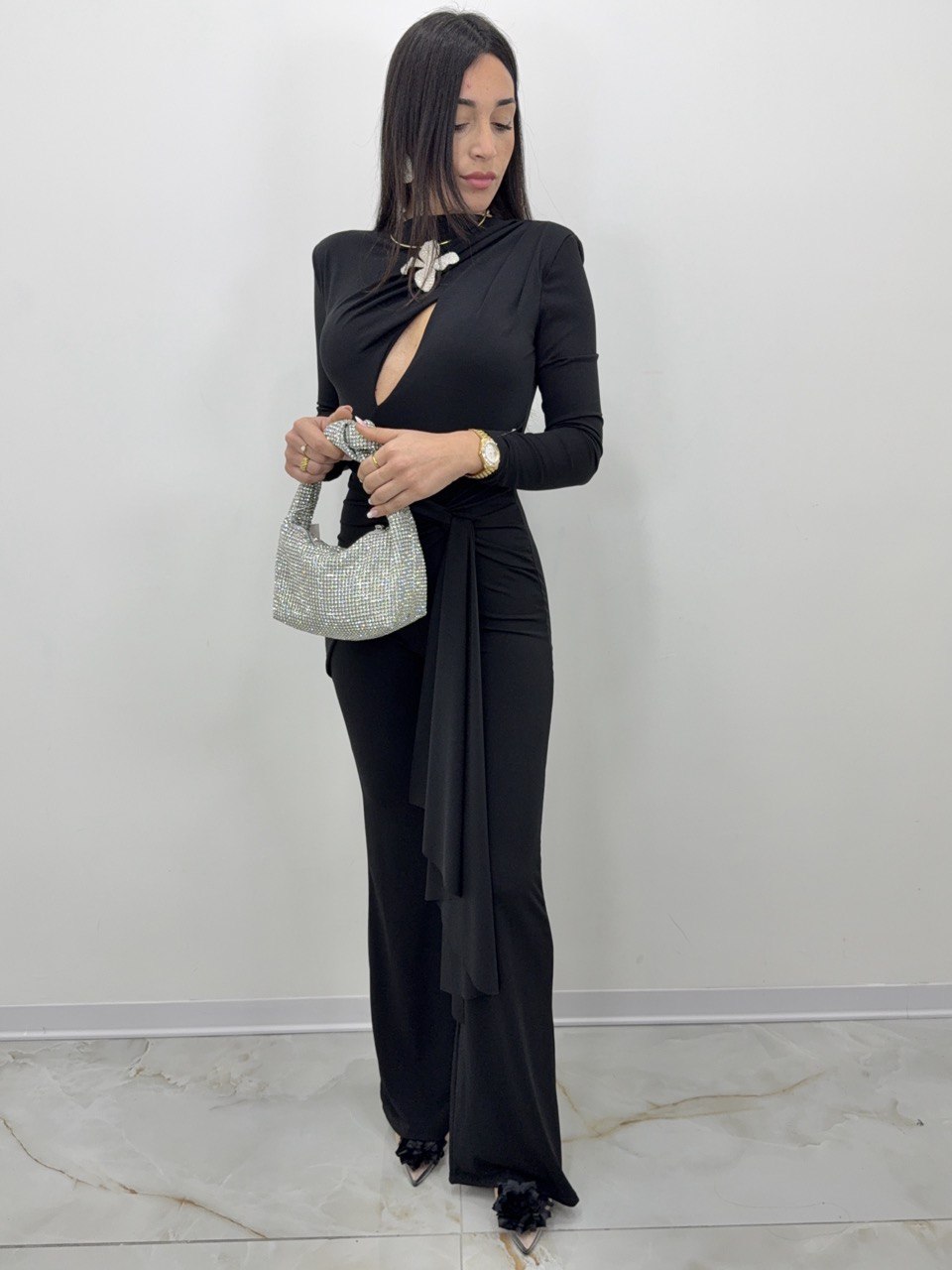 Tutone Monospalla veste TAGLIA UNICA. Tutone palazzo monospalla con apertura. Nodo sotto al seno che...