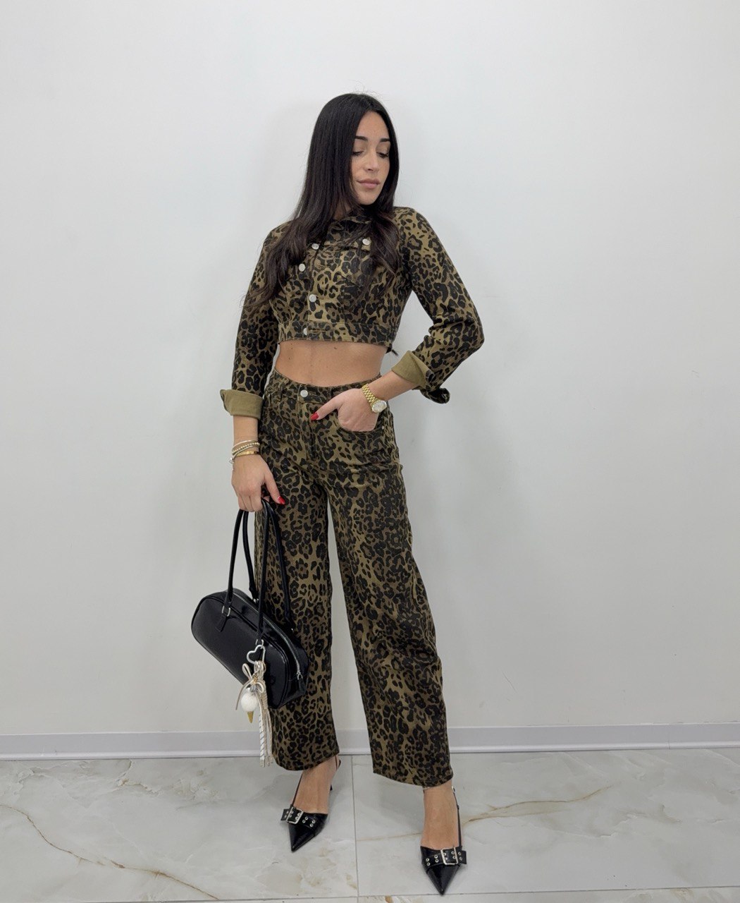 Coordinato Animalier veste dalla Tg XS alla Tg L. La ragazza in foto è alto...