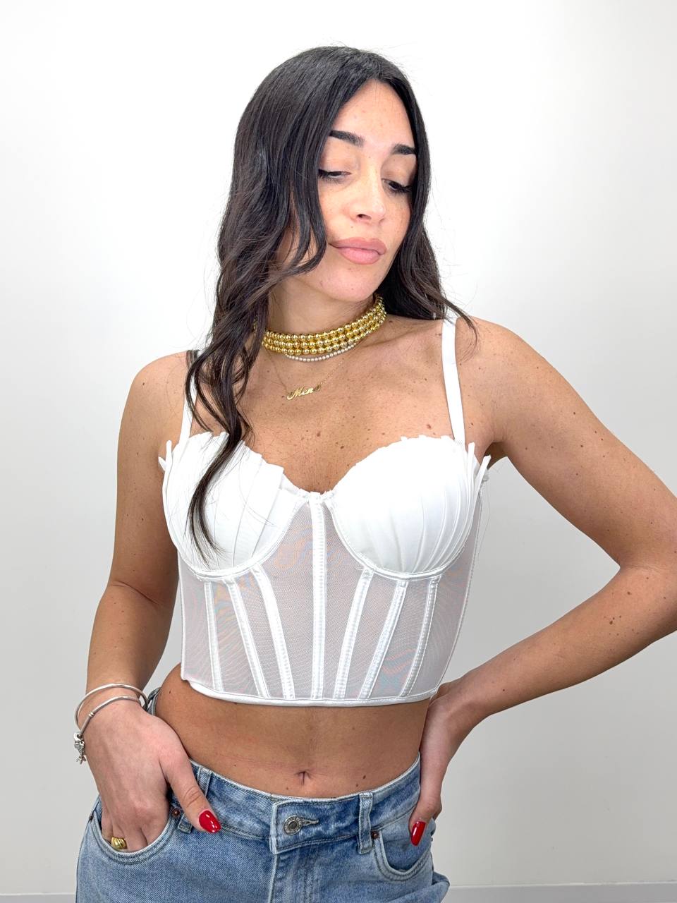 Bralette bianca in pizzo veste Tg S\M-M\L. La ragazza in foto è alta 1,70 pesa...