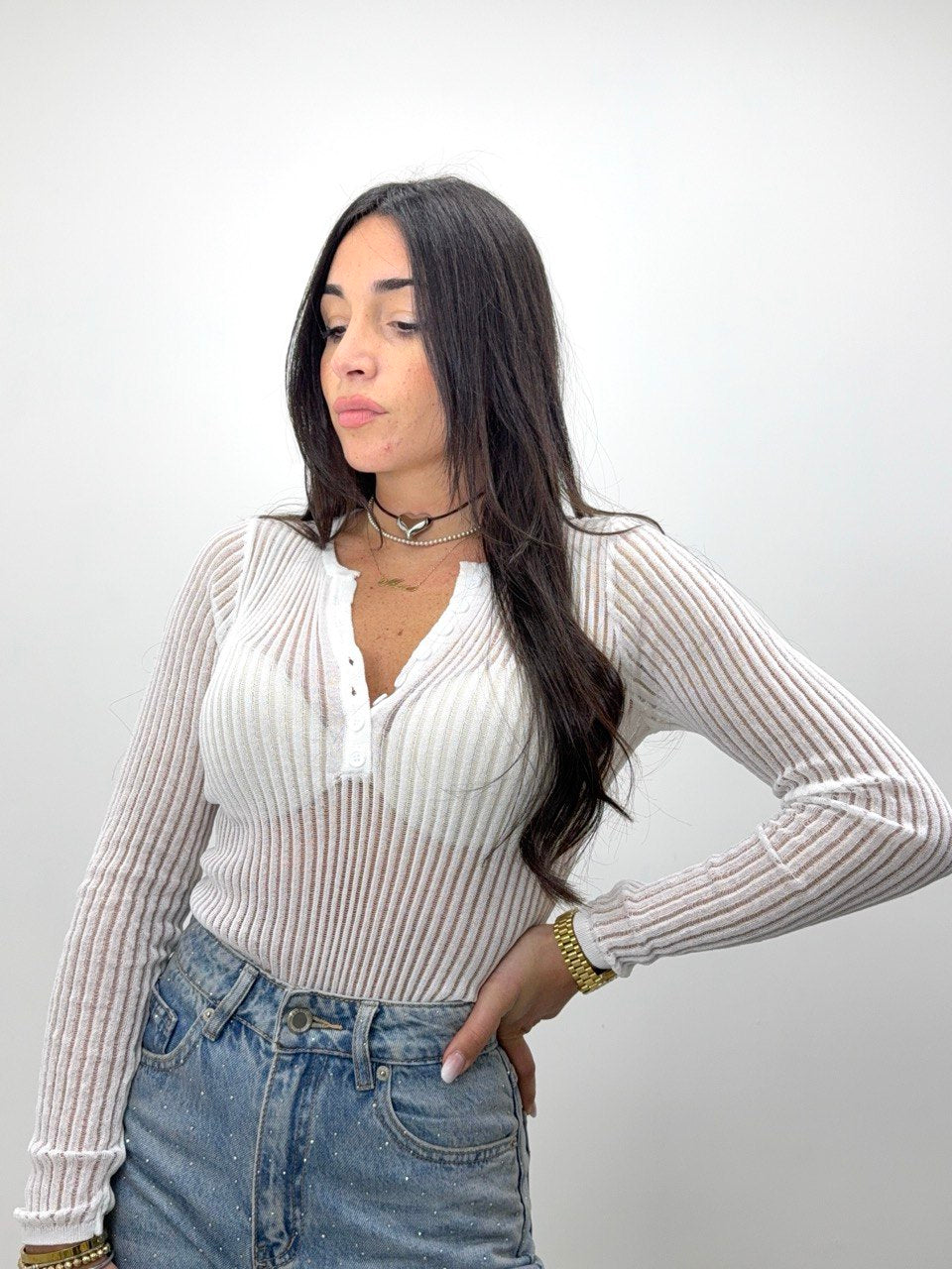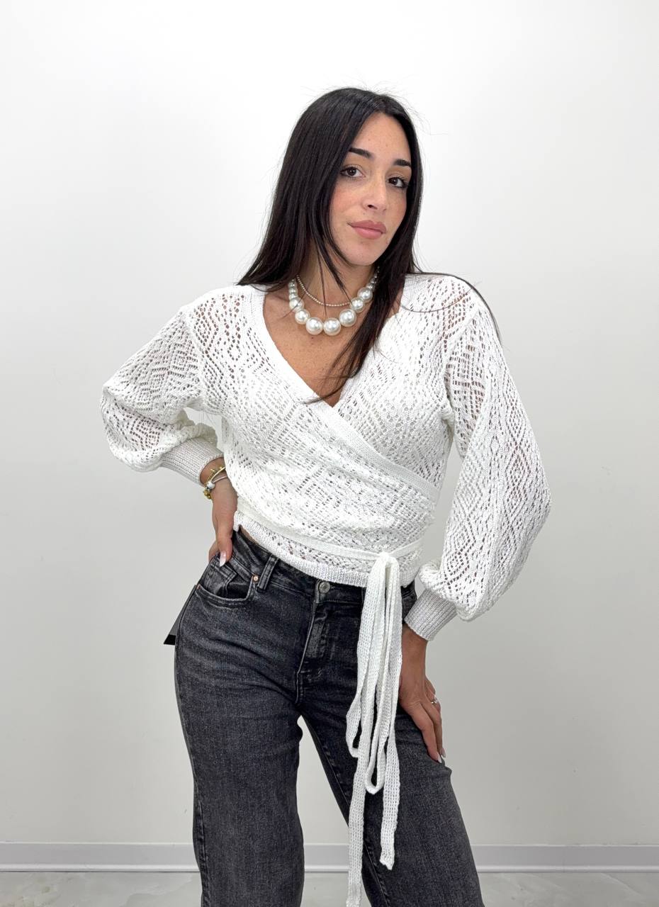 Intrecciatina traforata veste Taglia Unica. Magliettina con intreccio bianca con particolarità di piccole forature. COMPOSIZIONE:...