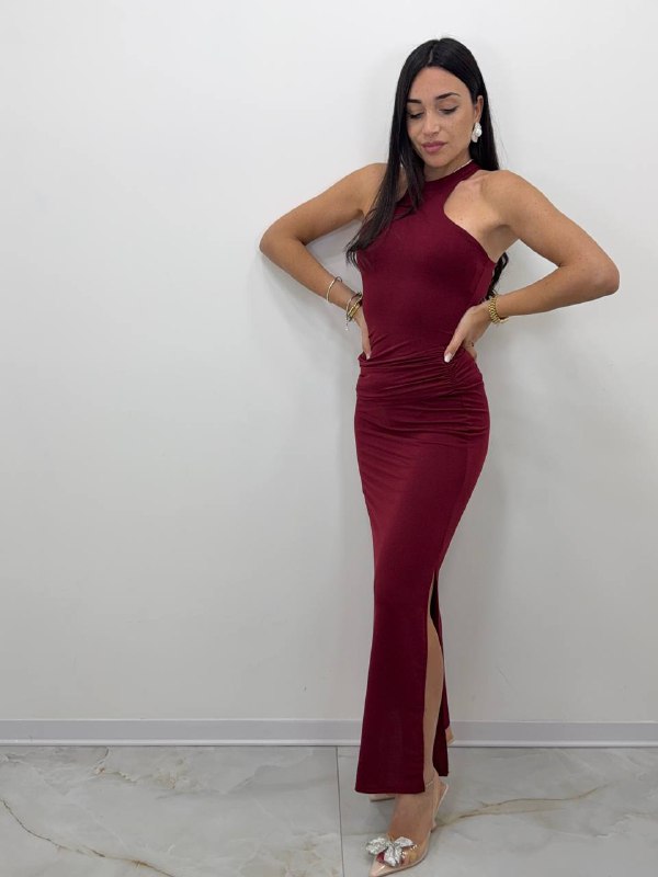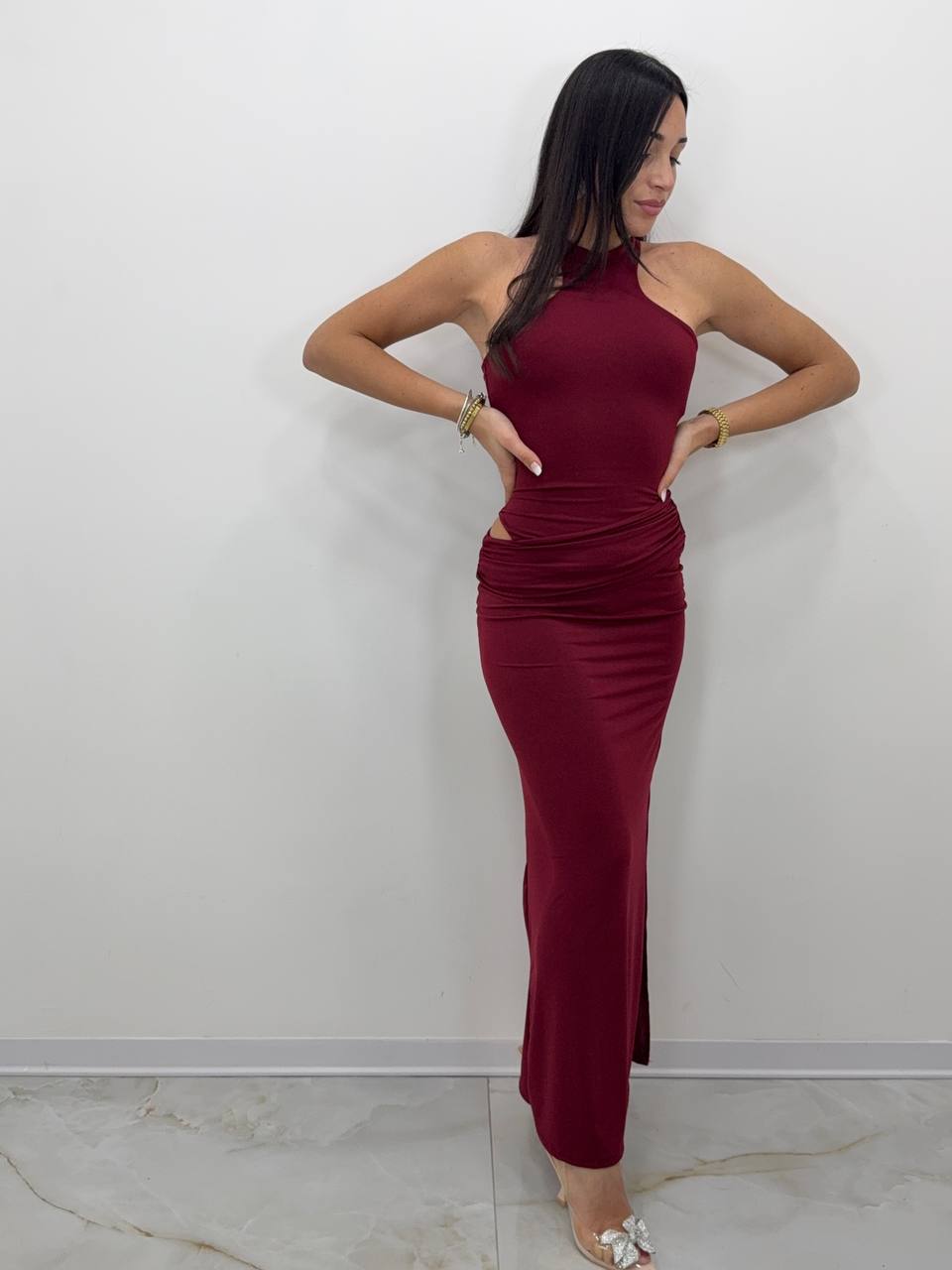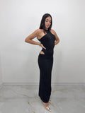 Abito Hole aderente, particolarità di una piccola apertura su un fianco e spacchetto a lato.