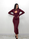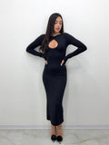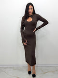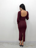 Abito lungo con scollo a goccia sul decolté, scollo sulla schiena.