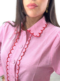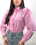 Camicia perfect quadri bianca e rosa con particolarità di colore rosso.