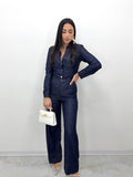 Coordinato composto da camicia con bottoni. Pantalome palazzo,chiusura centrale con bottone,aggiunta di elastico sul retro.
