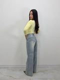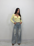 Jeans palazzo only, due tasche anteriori e due tasche posteriori.
