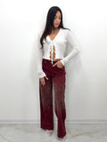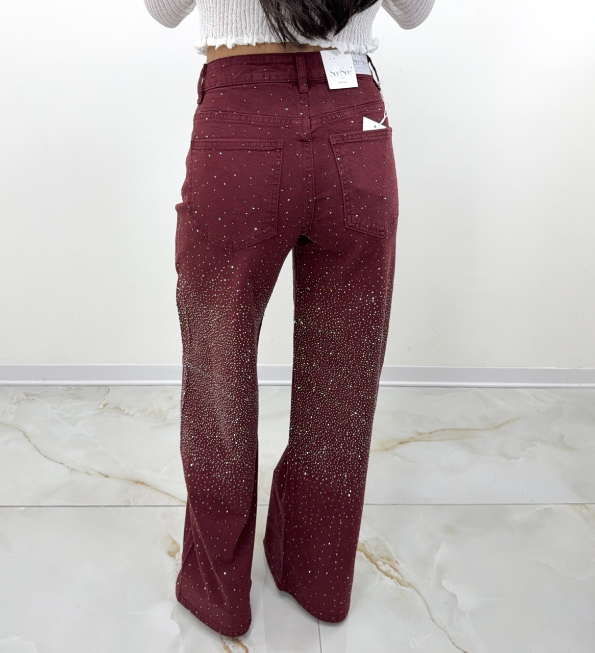 Jeans palazzo con cascata di piccoli strass super luminosi.