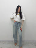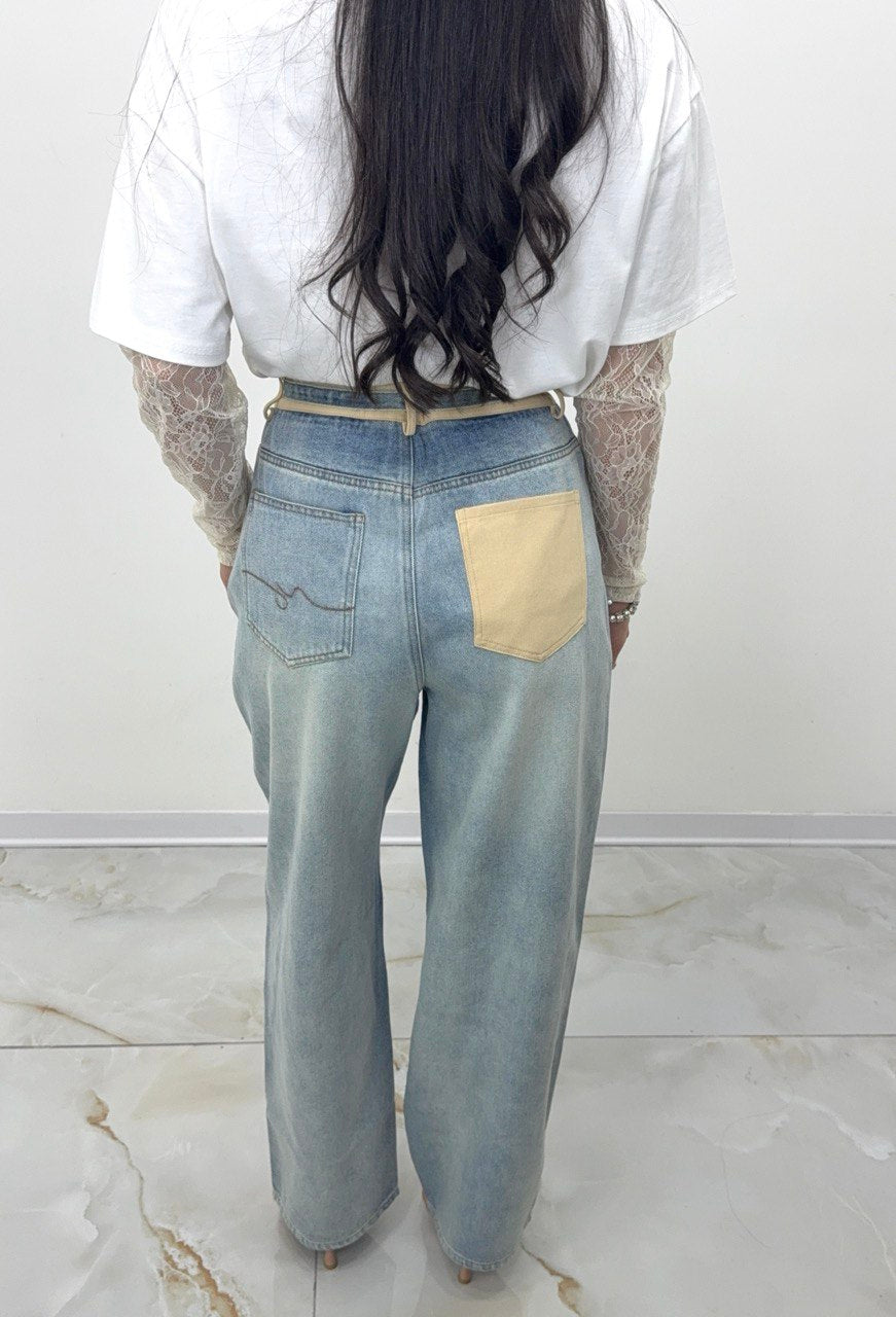 Jeans cinturino lavaggio chiaro veste dalla S alla L.