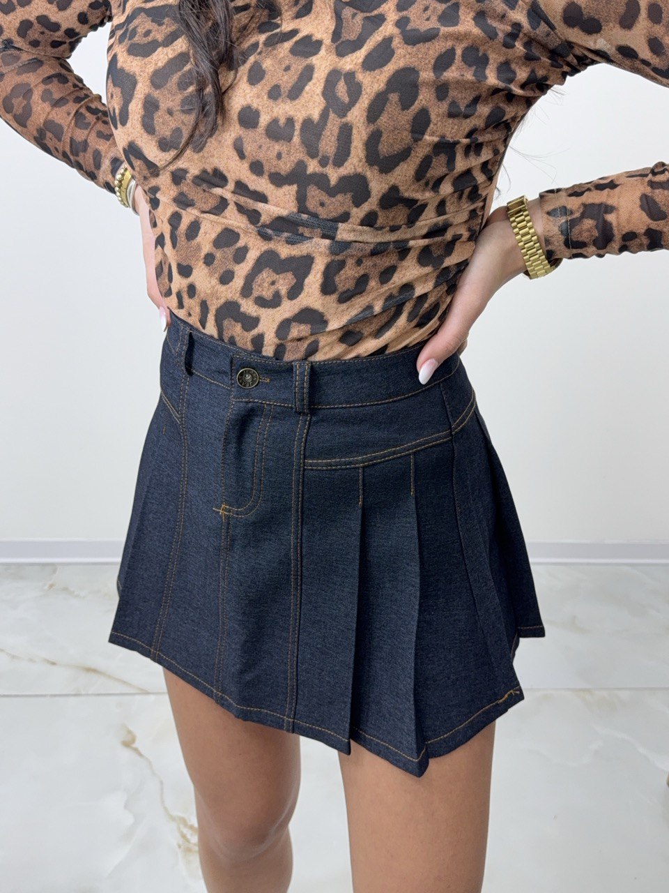 Pantagonna Baby con plissé larghe, chiusura con bottone e zip.