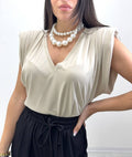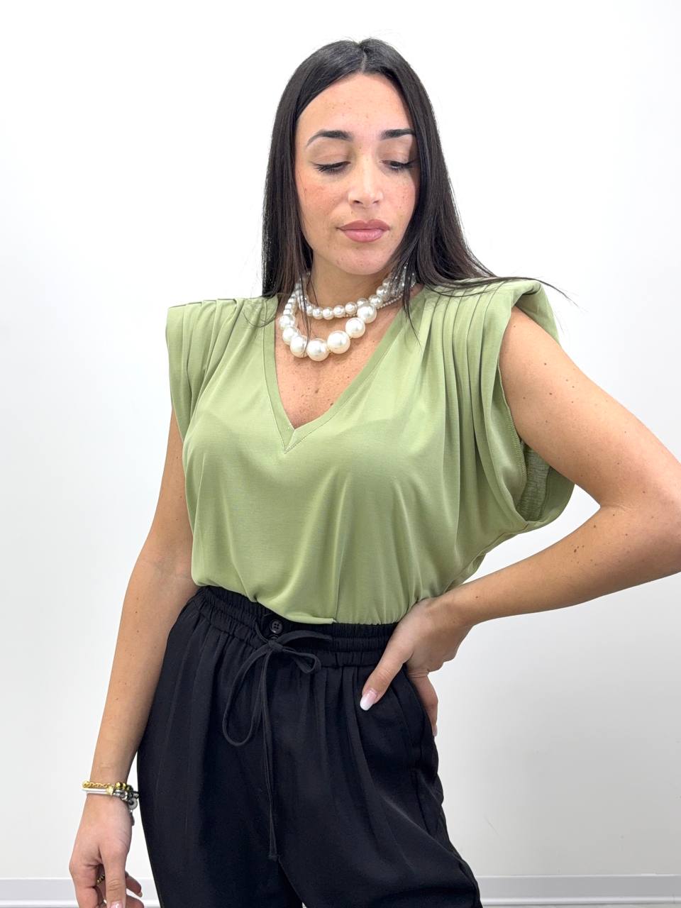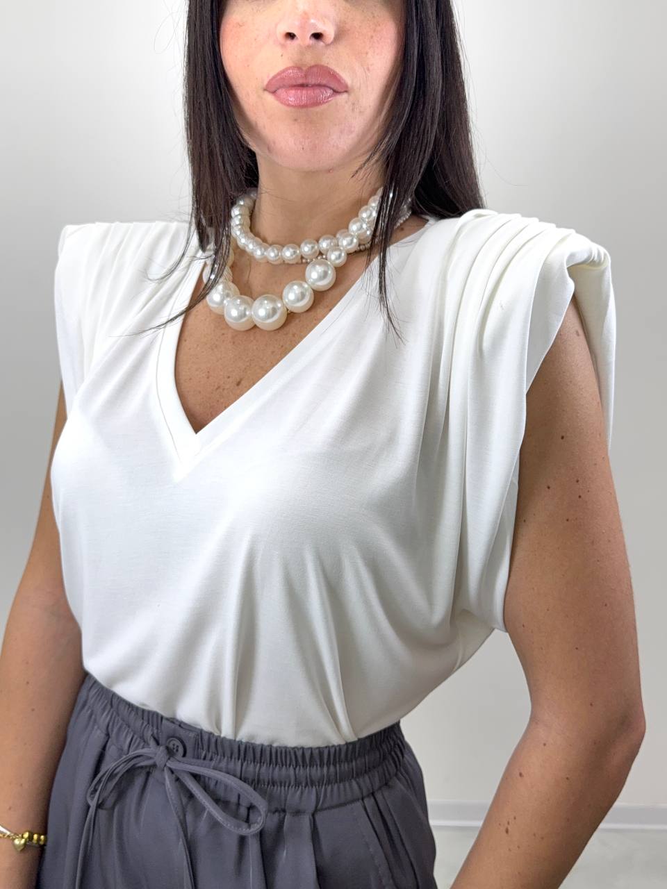 T-shirt Elisa con spalline incorporate, scollo a V.