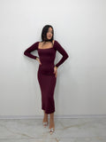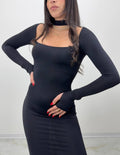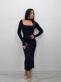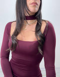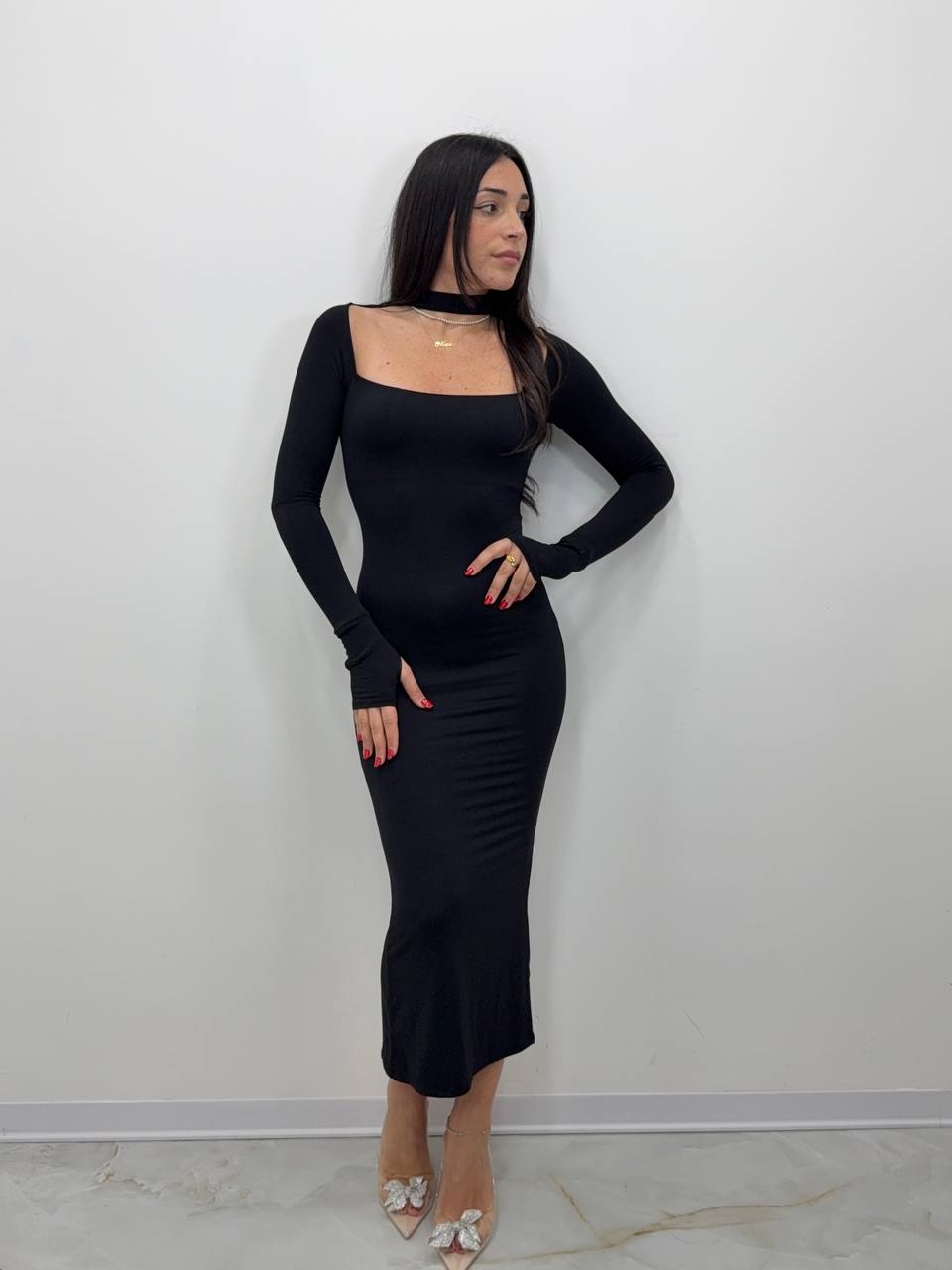 Abito fast con collarino, aderente e spacco centrale sul retro.