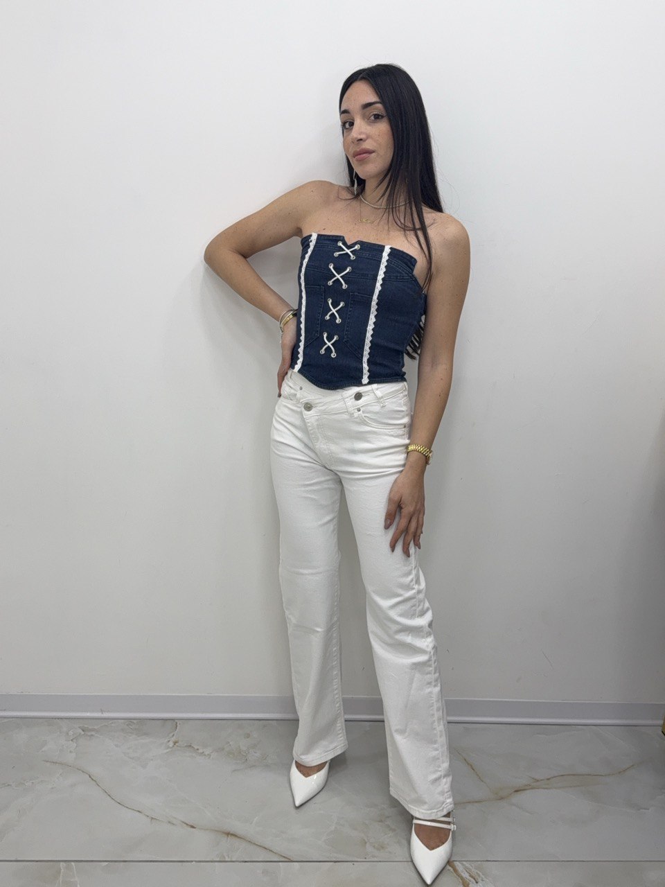 Jeans bianco doppio bottone veste dalla tg XS alla XL.