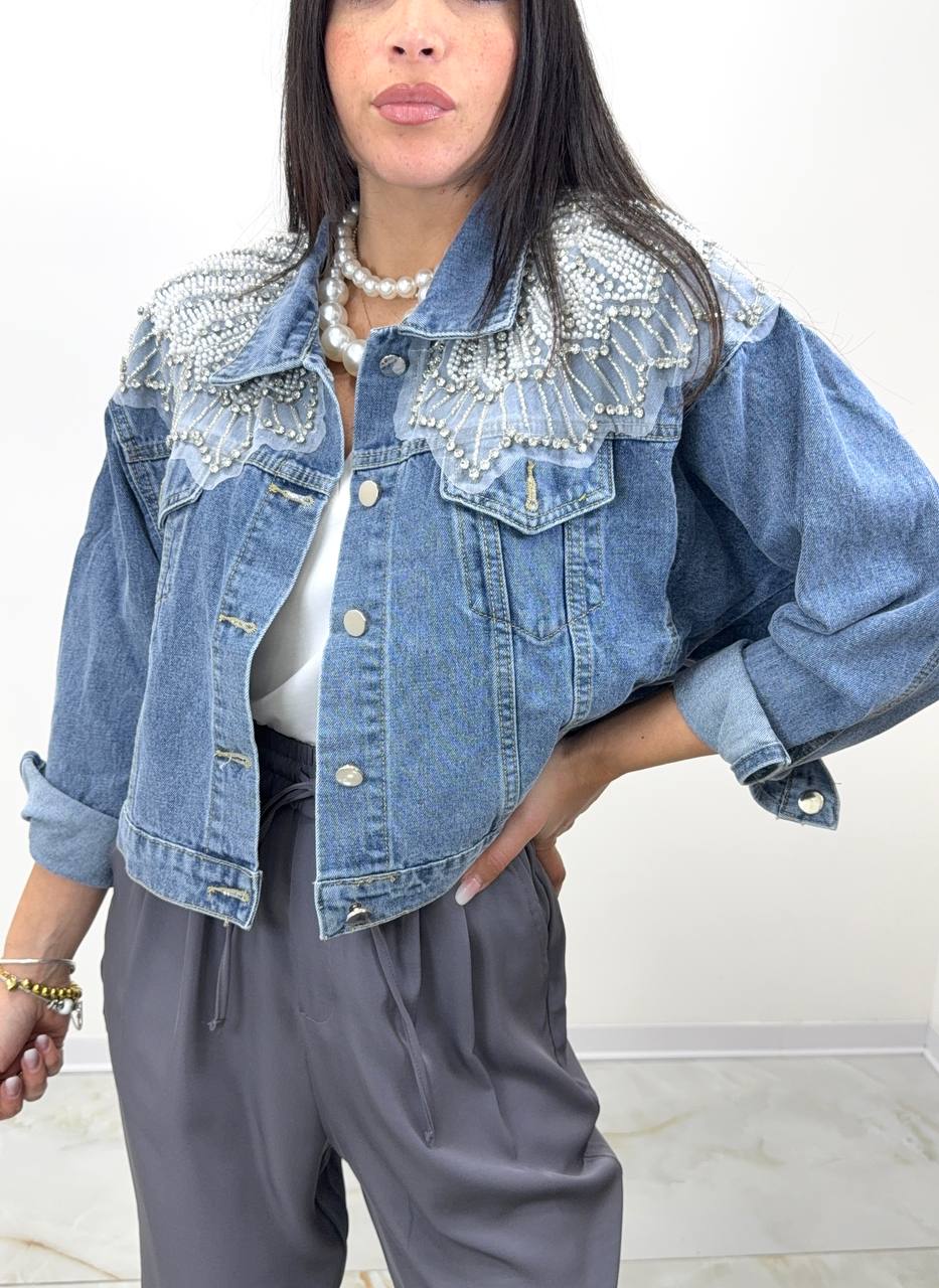 Giubbino Lisa veste taglia unica. Giubbino Lisa con strass e perle. Chiusura bottoni. VESTIBILITA: OVER ...